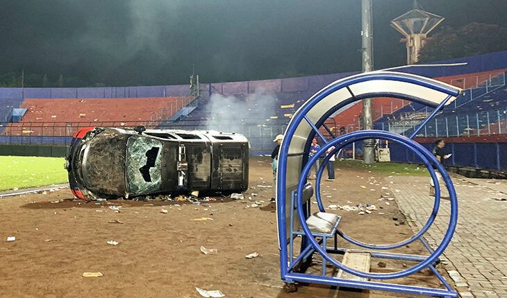 Матч чемпионата Индонезии между «Аремой» и «Персебаей» (2:3) закончился трагедией. После финального свистка фанаты «Аремы», разочарованные результатом, выбежали на поле и устроили беспорядки. Полиция применила слезоточивый газ (в том числе бросали гранаты), на стадионе началась давка. Результат этого кошмара – 174 погибших и 180 пострадавших.