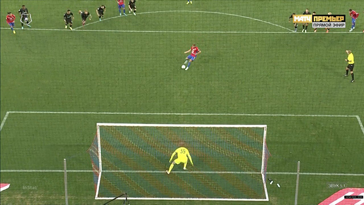 В данном эпизоде партнер бьющего игрока команды ЦСКА Хесус Медина до удара вошел в штрафную площадь на расстояние не более одного метра, не оказывая влияния на вратаря команды соперника, в связи с чем, комиссия единогласно поддерживает решение судьи засчитать гол, забитый с 11-метрового удара».