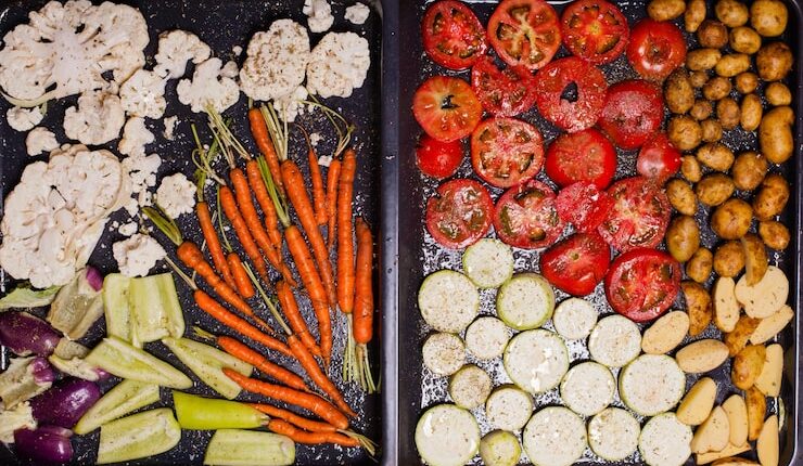 После того, как овощи уложены на противень, их нужно сбрызнуть небольшим количеством масла и приправить по вкусу. Это добавит аромата и поможет предотвратить прилипание овощей к противню.