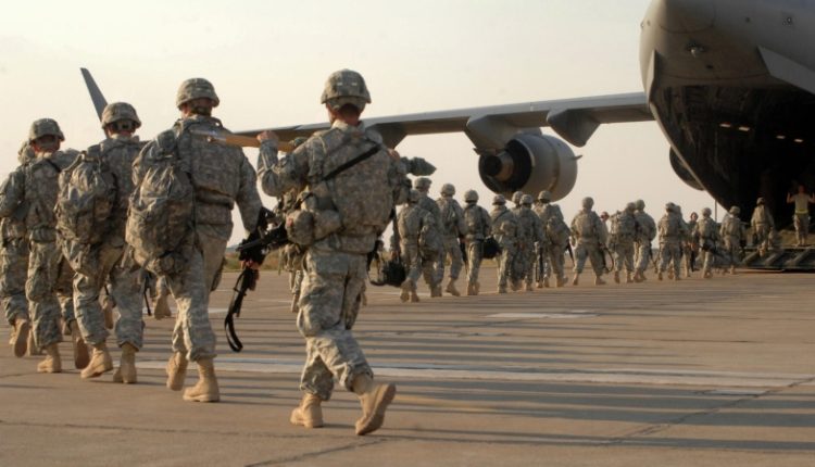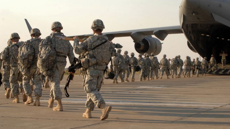 Американские военные во время посадки в самолет на авиабазе в Киркуке, Ирак. Архивное фото