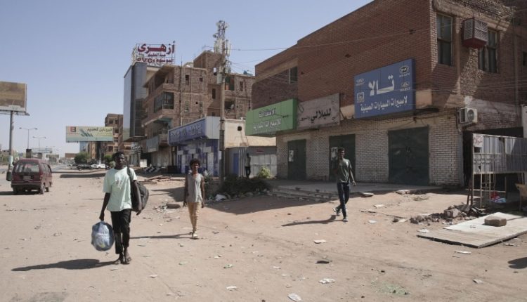 Люди проходят мимо магазинов, закрытых из-за боевых действий. Хартум, Судан. Архивное фото