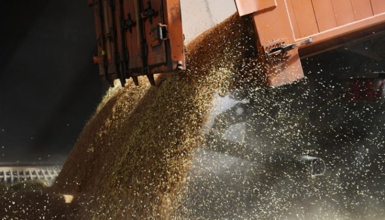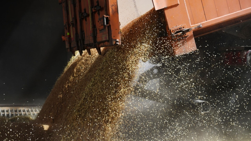 Машина выгружает зерно. Архивное фото