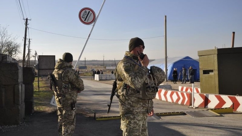 Украинские пограничники на контрольно-пропускном пункте. Архивное фото