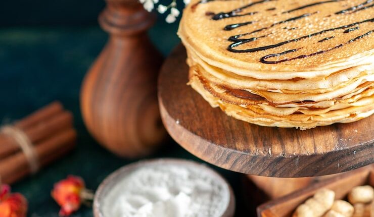 Подавайте яичные оладьи на крахмале с вашим любимым соусом или сиропом. Они также отлично сочетаются с фруктами, йогуртом или даже солеными продуктами, такими как бекон или ветчина. Попробуйте этот рецепт сегодня и насладитесь вкусным и быстрым завтраком!