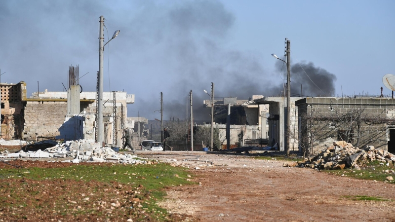 Разрушенные дома в освобожденном от боевиков населенном пункте ад-Дейр аш-Шаркий в Сирии на юго-востоке провинции Идлиб. Архивное фото