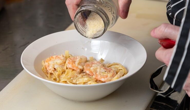 Начните с варки спагетти. В кипящую воду добавьте щепотку соли и через 8 минут ваши макароны будут готовы.
