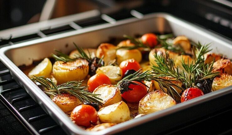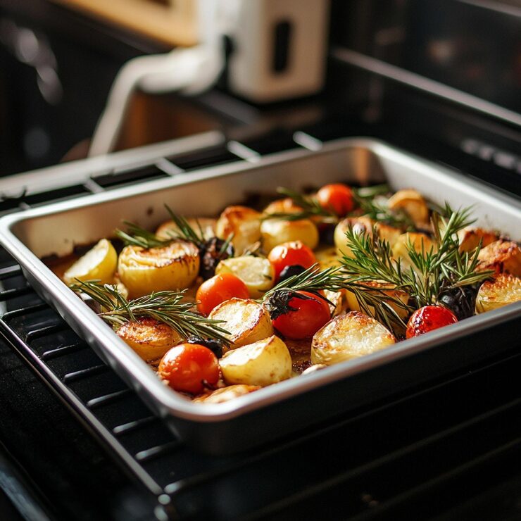 Используйте противни с низкими бортами для лучшей циркуляции воздуха и равномерного приготовления. Также они удобны для перемещения блюд в и из печи.