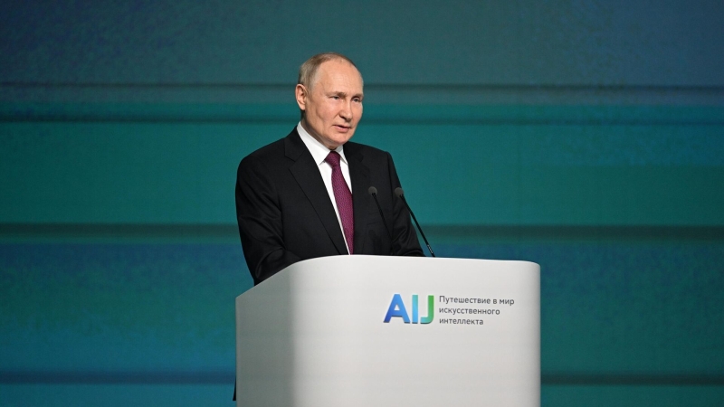Президент РФ Владимир Путин выступает на международной конференции «Путешествие в мир искусственного интеллекта». Архивное фото