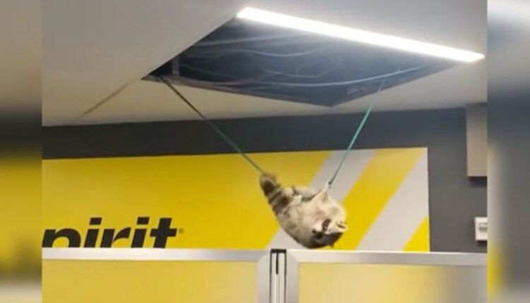 В аэропорту Ла-Гуардия в Нью-Йорке произошел необычный инцидент: пассажиры стали свидетелями падения енота с потолка в зоне посадки. Видео, опубликованное в социальных сетях, показывает, как животное, зацепившись за висячий кабель, теряет хватку и падает вниз, вызывая панику среди путешественников.