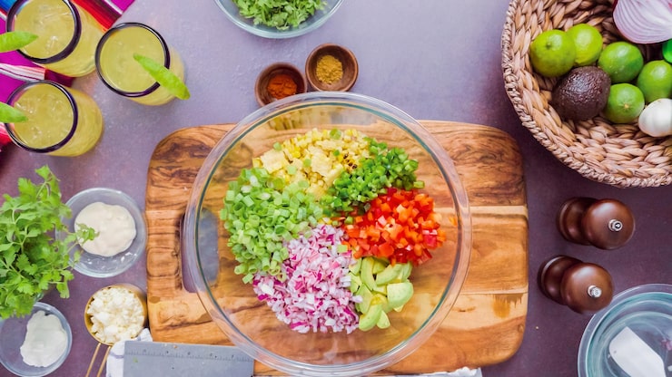 Начните с выбора свежих и качественных ингредиентов. Овощи и фрукты должны быть спелыми и сочными, а зелень — яркой и хрустящей. Для заправки используйте оливковое масло, лимонный сок, горчицу или йогурт без добавок.