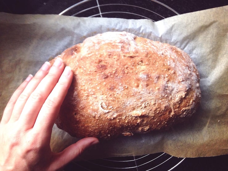 После выпечки дайте хлебу остыть в течение нескольких минут, прежде чем нарезать его и подавать к столу. Наслаждайтесь свежеиспеченным хлебом!