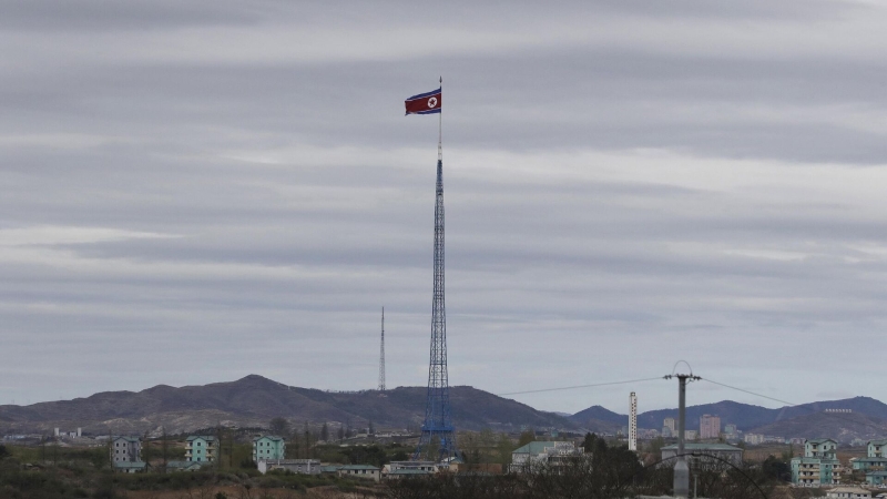 Северокорейский флаг в демилитаризованной зоне . Архивное фото