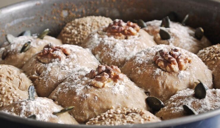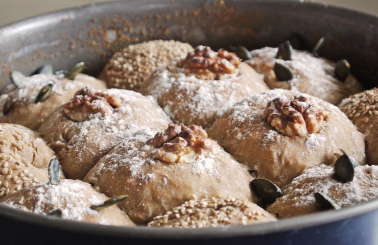 Разделите тесто на небольшие кусочки и сформируйте из них шарики. Положите шарики на смазанный маслом противень, накрытый крышкой. Дайте тесту подняться в течение 30 минут.