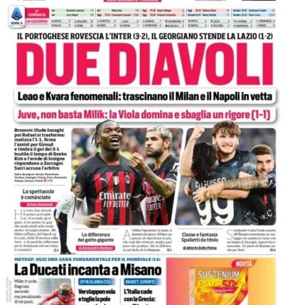 Победы «Милана» над «Интером» и «Наполи» над «Лацио», а также ничья «Ювентуса» с «Фиорентиной» – в обзоре заголовков итальянских спортивных изданий в блоге «В гостях у Кальчо».
