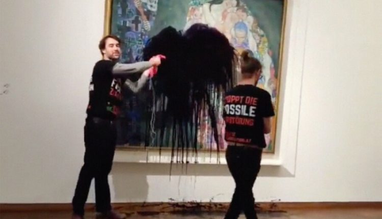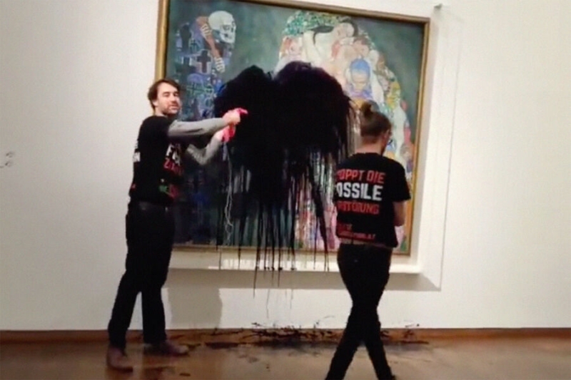 «Наши люди облили сегодня нефтью картину Климта «Смерть и жизнь» в Музее Леопольда. Новые нефтяные и газовые скважины — это смертный приговор человечеству», — говорится в записи.