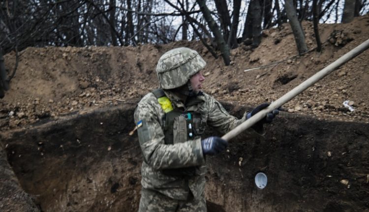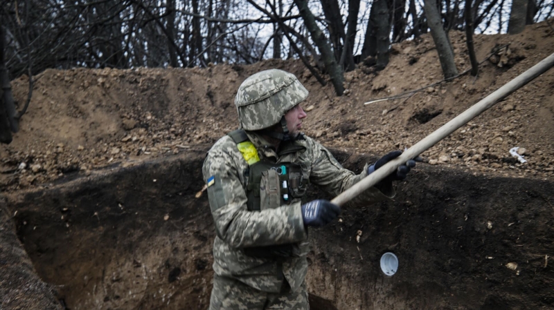 Военнослужащий ВСУ копает траншею. Архивное фото