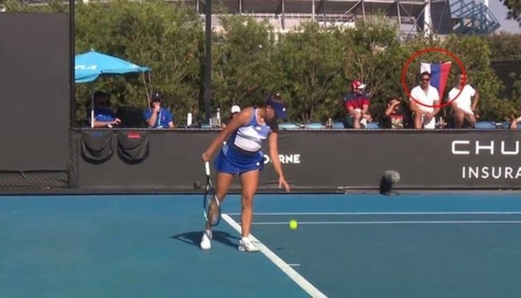 Во время матча российской и украинской теннисисток в рамках чемпионата Australian Open в понедельник, 16 января, болельщики развернули на трибунах флаг РФ.