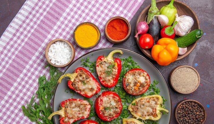 Начните с выбора подходящих перцев. Идеально подходят крупные перцы с толстыми стенками и плоским основанием, чтобы они стояли ровно. Тщательно вымойте перцы и срежьте верхушки, не срезая слишком много, чтобы сохранить форму перца.