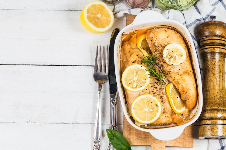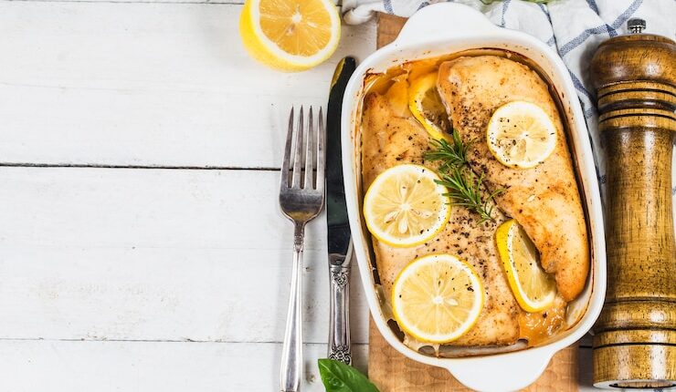 Затем поместите рыбу на лист фольги, сложенный в два слоя, чтобы предотвратить протечку сока. Добавьте в фольгу дольки лимона, лук, морковь или другие овощи по вашему выбору. Это добавит дополнительный аромат и вкус рыбе.