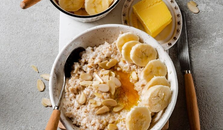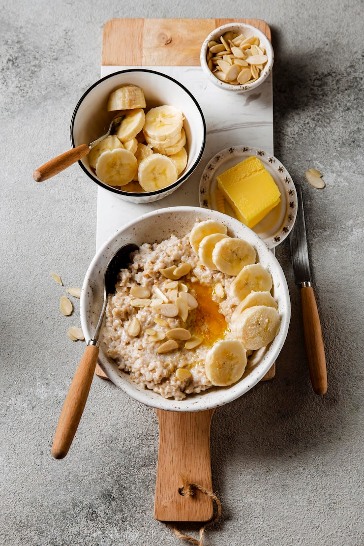 Начните с правильного выбора овсяных хлопьев. Овсяные хлопья быстрого приготовления содержат меньше клетчатки и имеют более высокий гликемический индекс, чем цельные овсяные хлопья. Для более полезной и сытной каши выберите цельные овсяные хлопья.
