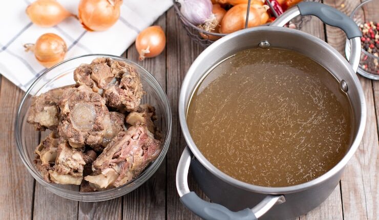 Теперь добавьте бульон. Начните с небольшого количества, чтобы соус не получился слишком жидким. Доведите смесь до кипения, затем убавьте огонь и дайте ей медленно томиться.