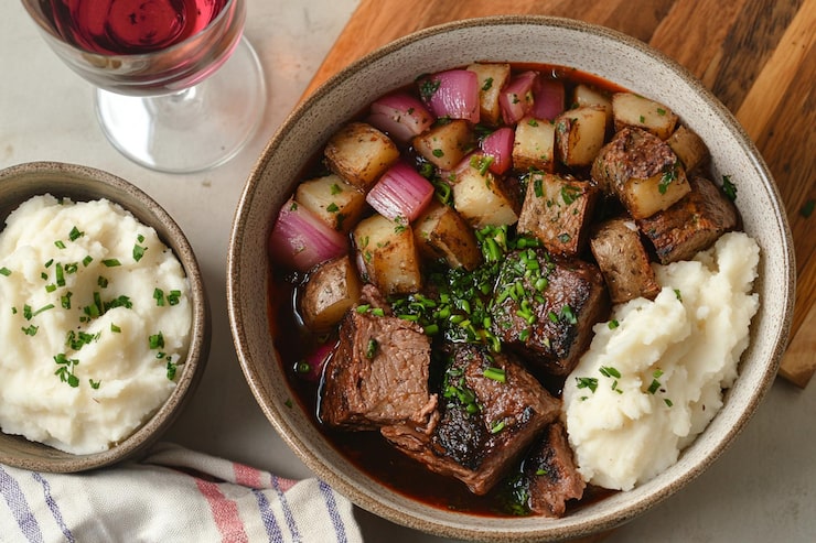 Подавать мясное рагу можно с хлебом или картофельным пюре. Приятного аппетита!