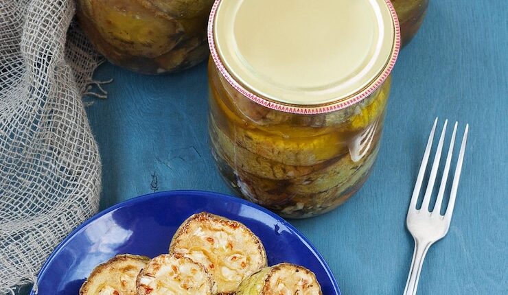 После того, как банки наполнены, нужно залить маринад в каждую банку, пока он не достигнет горлышка. Затем нужно закрыть банки крышками и поставить их в кастрюлю с кипящей водой. Банки нужно стерилизовать в течение 10-15 минут, в зависимости от высоты банки.