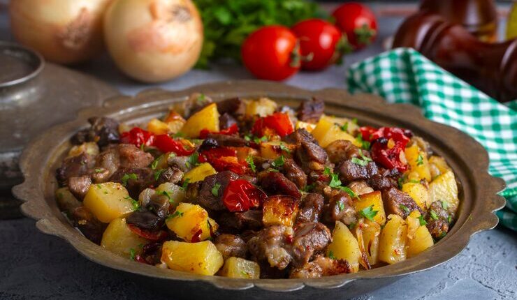 Начните с обжаривания нарезанного мяса в раскаленном казане. Выберите нежное мясо, такое как свинина или говядина, чтобы получить идеальный вкус. После того, как мясо подрумянилось, добавьте нарезанный картофель и обжаривайте до полуготовности.