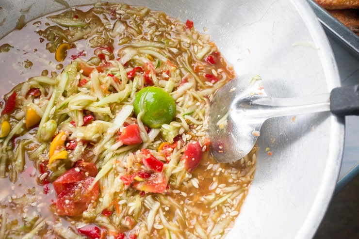 Когда все ингредиенты готовы, добавьте заправку к салату и тщательно перемешайте. Убедитесь, что каждый лист капусты и каждый кусочек овощей равномерно покрыты заправкой.