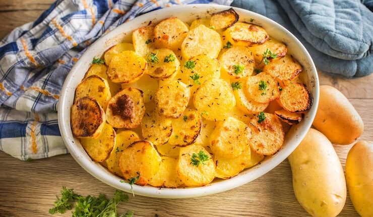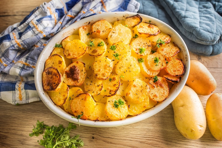 Для начала, выберите крупные клубни картофеля, так как они идеально подходят для запекания. Тщательно вымойте их и просушите, чтобы удалить лишнюю влагу. Затем разрежьте каждый клубень на четыре части, чтобы они равномерно пропеклись в духовке.