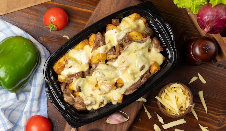 Теперь блюдо готово к запеканию. Запекайте его в предварительно разогретой духовке при температуре около 200 градусов по Цельсию в течение 20-25 минут или до тех пор, пока клубнеплоды не станут мягкими, а плавленый продукт не расплавится.
