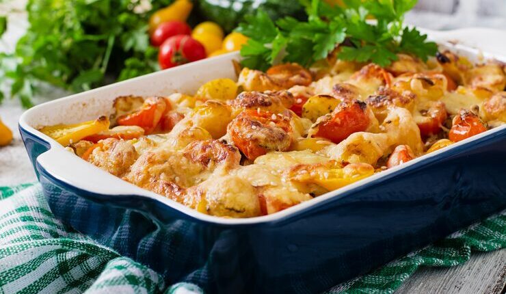 Поставьте форму в предварительно разогретую духовку и запекайте при температуре 180 градусов в течение 20-25 минут или до тех пор, пока верх не станет золотистым и хрустящим.