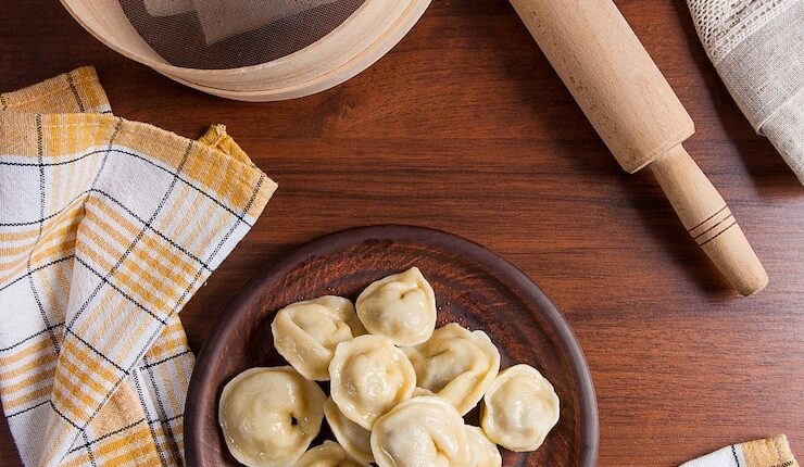Отварите пельмени в кипящей подсоленной воде в течение 5-7 минут или до тех пор, пока они не всплывут на поверхность. Слейте воду и подавайте пельмени горячими с вашим любимым соусом.
