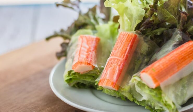 Крабовый салат прекрасно сочетается с различными блюдами. Например, он идеально подходит в качестве закуски к основным блюдам из мяса или рыбы. Также его можно подавать с хлебом или гренками, чтобы создать полноценный обед или ужин.