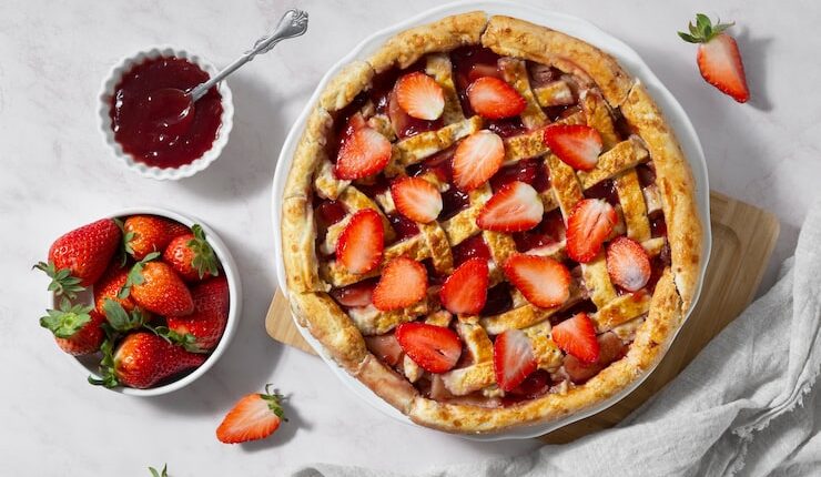 Пока тесто печется, приготовьте начинку. Для этого смешайте творог, сахар, яйца и ванильный экстракт. Добавьте к этой смеси ягоды — клубнику, малину или любую другую сезонную ягоду. Аккуратно перемешайте, чтобы ягоды сохранили свой цвет и форму.