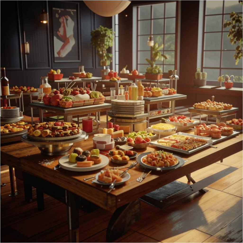 Важный момент – обслуживание. Наличие персонала, который будет своевременно пополнять блюда и убирать использованную посуду, добавит удобства и подчеркнет профессионализм.