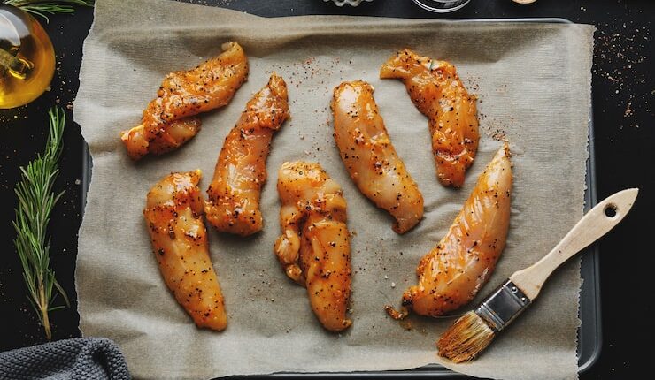 Разогрейте духовку до 200 градусов. Застелите противень пергаментной бумагой или смажьте его маслом, чтобы курица не прилипла.
