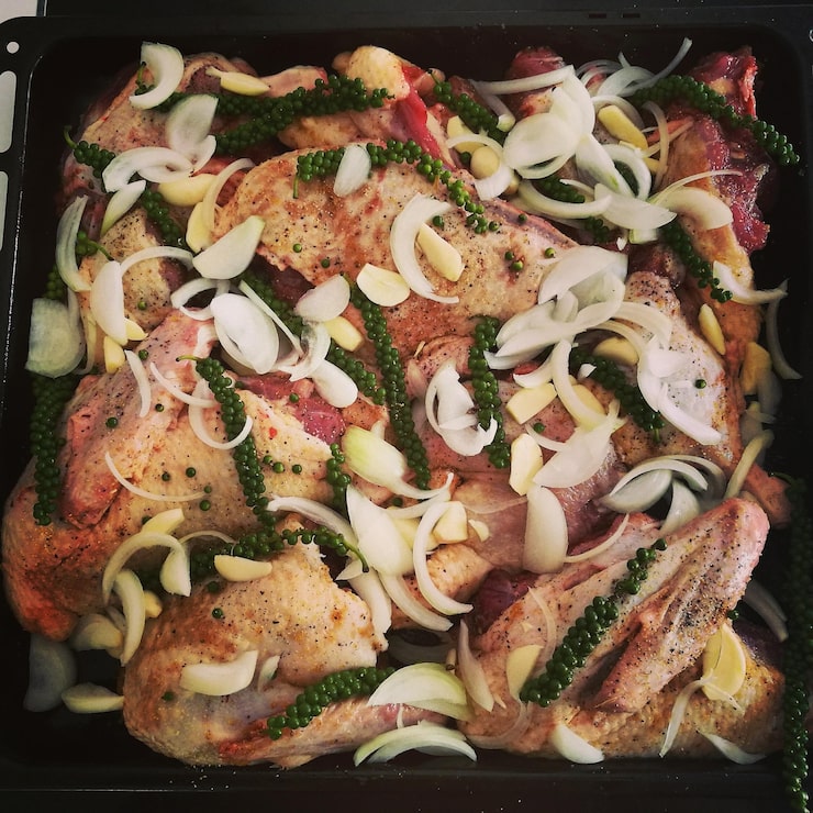 Затем, чтобы придать птице сочность и аромат, сделайте надрезы на коже. Это поможет специям и маринадам проникнуть внутрь мяса во время приготовления.