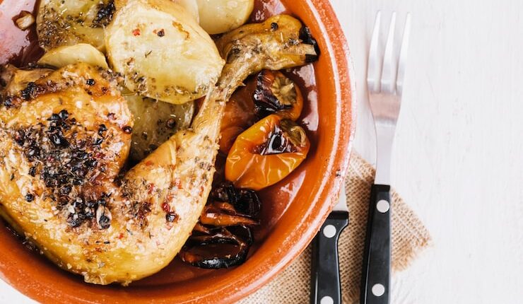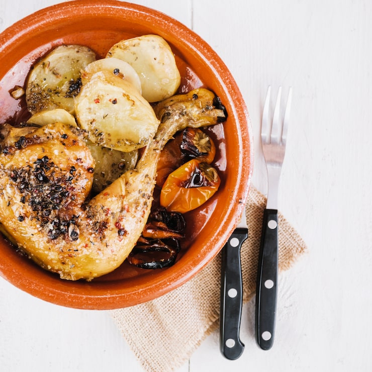 Для более сочного блюда, можно предварительно замариновать курицу в смеси из оливкового масла, лимонного сока, чеснока и специй. Картофель можно нарезать крупными кусками или оставить целым, в зависимости от ваших предпочтений. Не забудьте посолить и поперчить блюдо перед подачей на стол.
