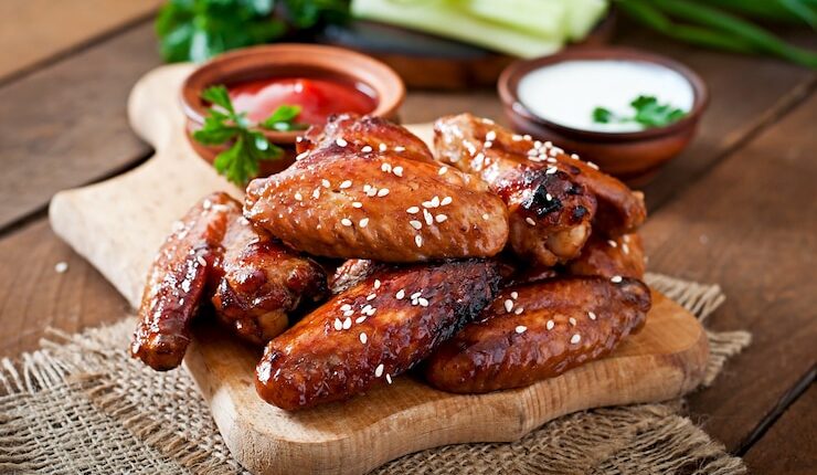Подавайте крылья горячими, посыпав их зеленью и дополнив любимым соусом. Приятного аппетита!