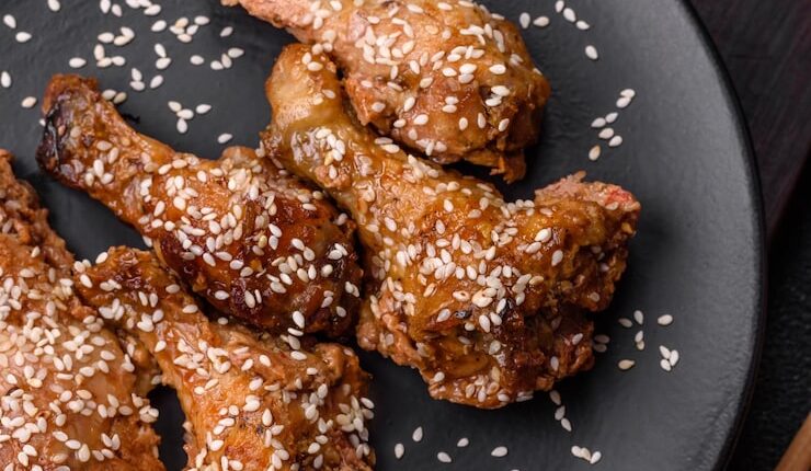 Теперь перейдем к приготовлению крылышек. Обсушите их бумажным полотенцем, чтобы удалить лишнюю влагу. Затем обваляйте их в крахмале, чтобы они стали хрустящими при жарке. Разогрейте масло в сковороде и обжарьте крылышки до золотистого цвета. Убедитесь, что они прожарились внутри, чтобы избежать сырости.