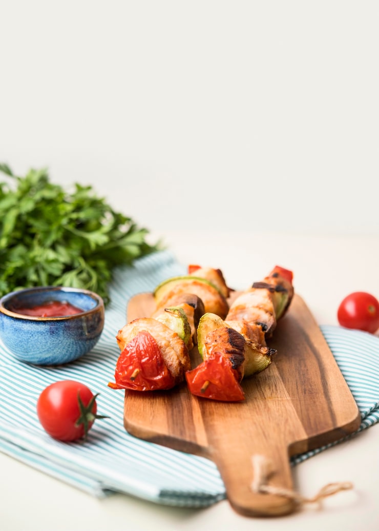Подавайте запеченные куриные кусочки на шпажках с любимым гарниром и наслаждайтесь вкусным и легким ужином!