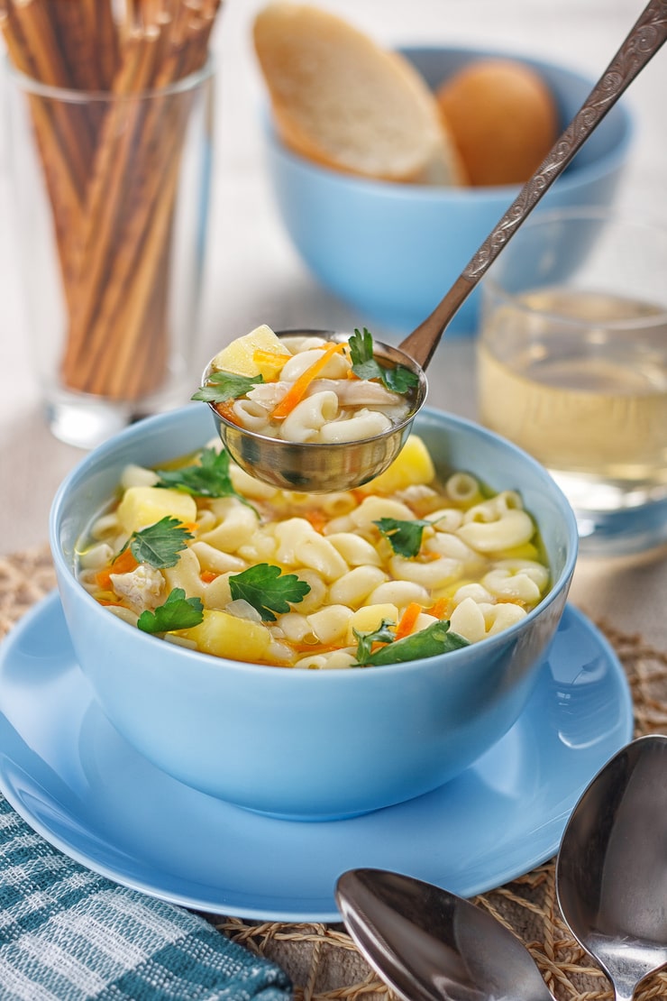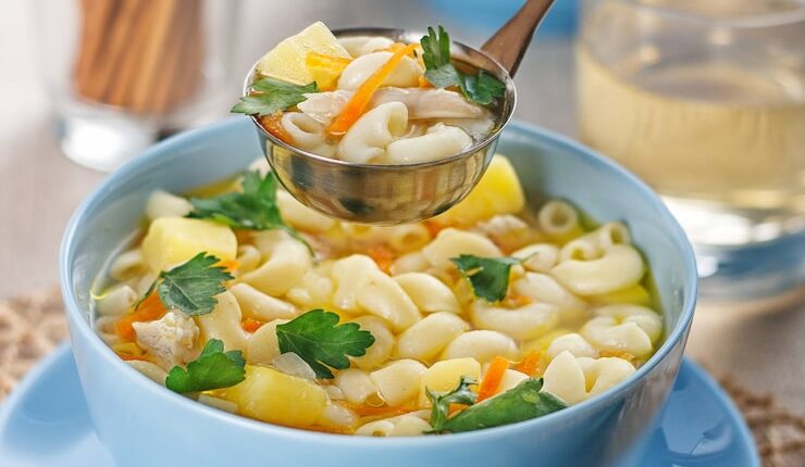 Для макарон выберите твердые сорта, такие как спагетти или пенне. Они лучше сохраняют свою форму при варке в супе.