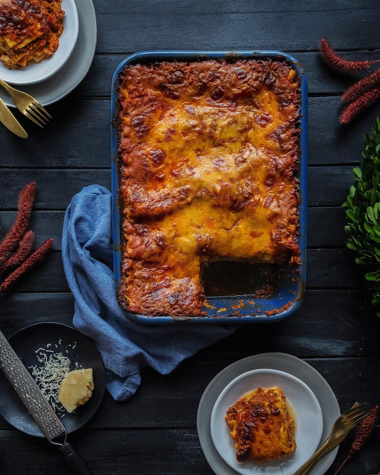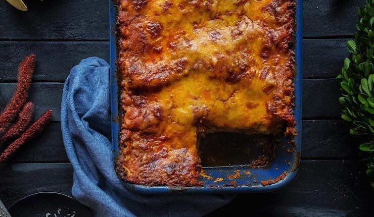 Поставьте лазанью в предварительно разогретую духовку и выпекайте при температуре 180 градусов в течение 30-35 минут, или до тех пор, пока сыр не зарумянится и не начнет пузыриться.