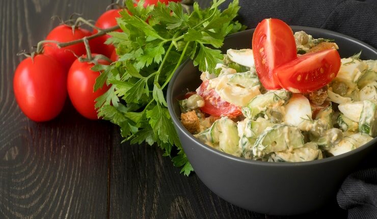 Начните с простого салата из огурцов и помидоров. Для этого вам понадобятся всего 3 ингредиента: огурцы, помидоры и лук. Нарежьте все ингредиенты кубиками, смешайте их в миске и добавьте немного соли, перца и оливкового масла. Этот салат готовится всего за 5 минут и идеально подходит для жаркого лета.