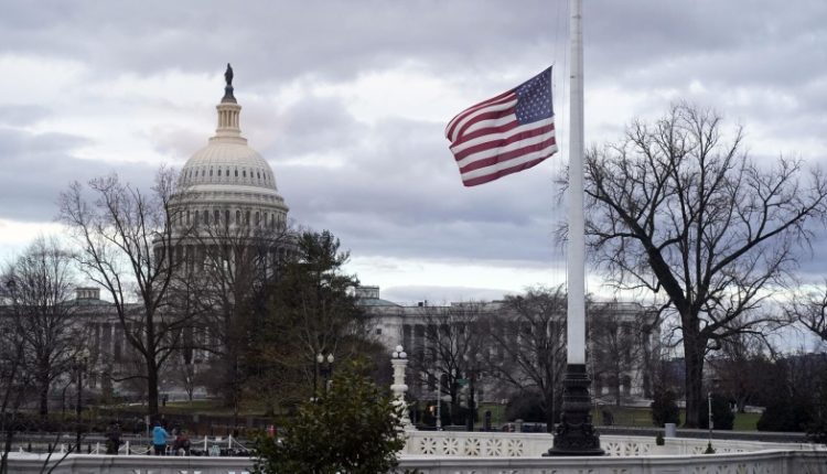 Приспущенный флаг напротив здания Капитолия США. Архивное фото