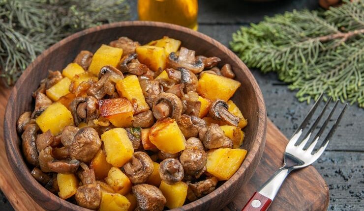 Первый шаг — правильно подготовить ингредиенты. Грибы нужно тщательно промыть и нарезать тонкими ломтиками. Картофель очистить и нарезать небольшими кубиками. Лук мелко порубить.