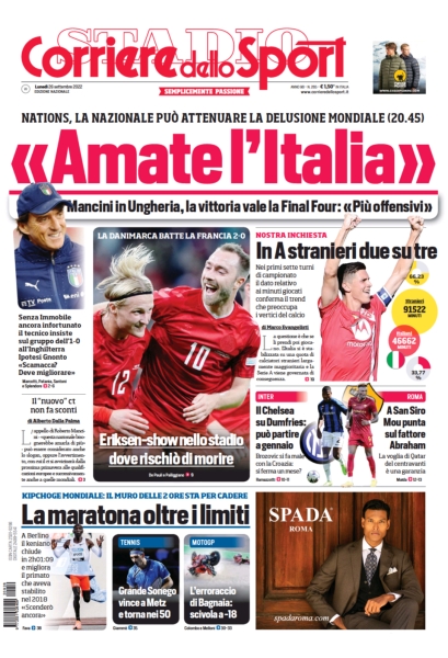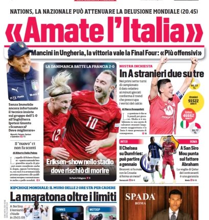 В 20:45 (СЕТ): Венгрия-Италия. Иммобиле дома: сборная Манчини снова ставит на Распадори, чтобы взлететь в финал Лиги Наций и окрасить в лазурный эту осень без Мундиаля.