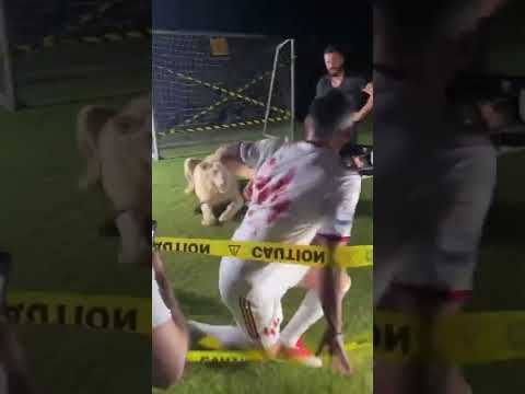 Фотография со львом так и не попала в соцсети «Шарджи» (там его представили как воина с копьем и щитом), но видео со сьемок просочилось в сеть – и дали отличный повод для шуток болельщиков и журналистов. В том числе смешных.