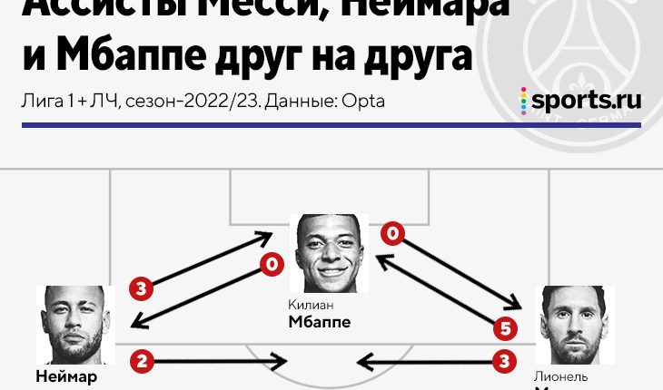 Кажется, все сломал новый контракт – потому что в прошлом году Мбаппе активно взаимодействовал с партнерами по атаке. Суммарная статистика за оба сезона (при том, что у Килиана 0 голевых в этом) вполне приличная: француз пасовал Месси и Неймару чаще, чем они друг другу.